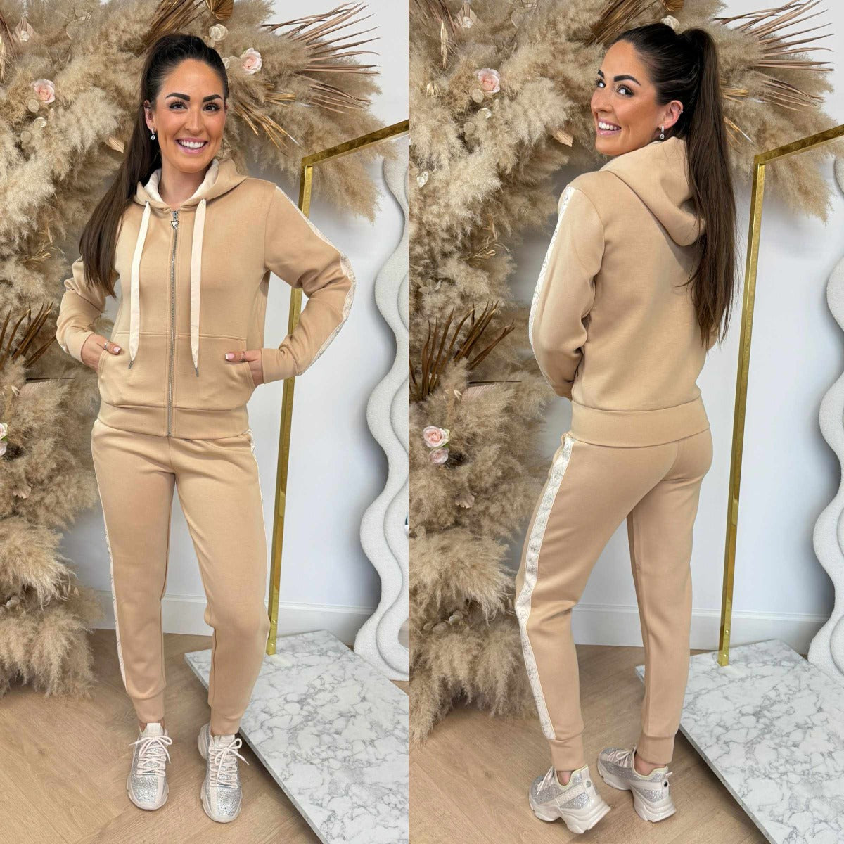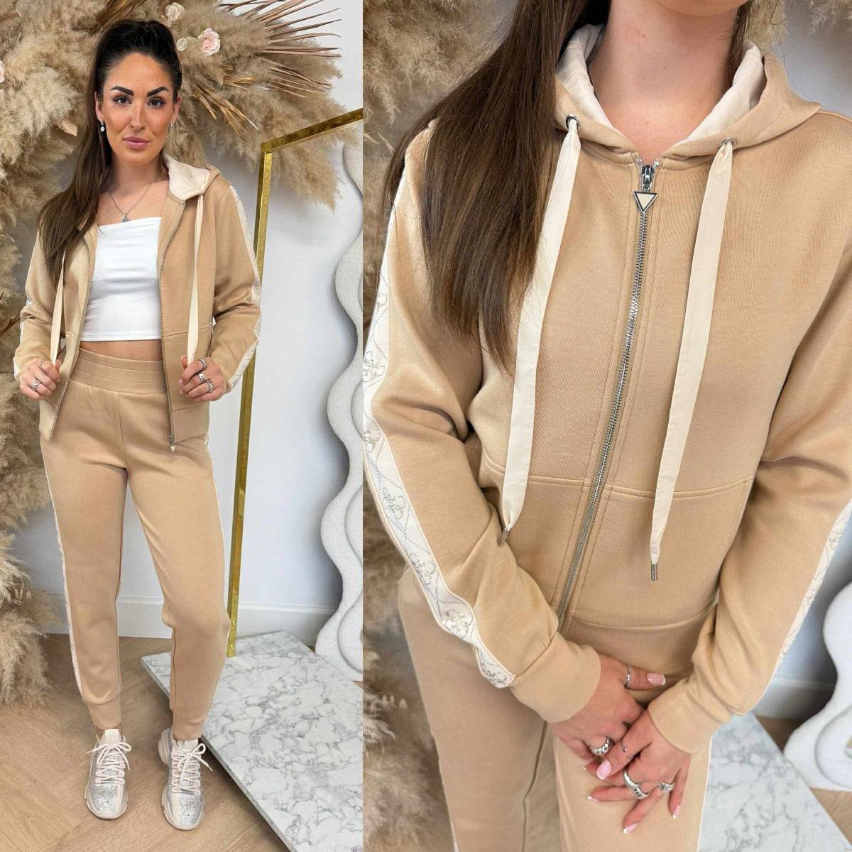 WOOOW, es kommt wieder eine SUPER schöne neue Kollektion von GUESS, darunter diese WUNDERSCHÖNE Strickjacke! Die Strickjacke hat eine schöne Kapuze und einen COOLEN Logo-Streifen an den Ärmeln! SCUBA-Qualität, also super bequem! Kombinieren Sie sie mit der passenden Hose, und auch für ein schönes GUESS T-Shirt unter diesem Set sind Sie bei uns richtig!